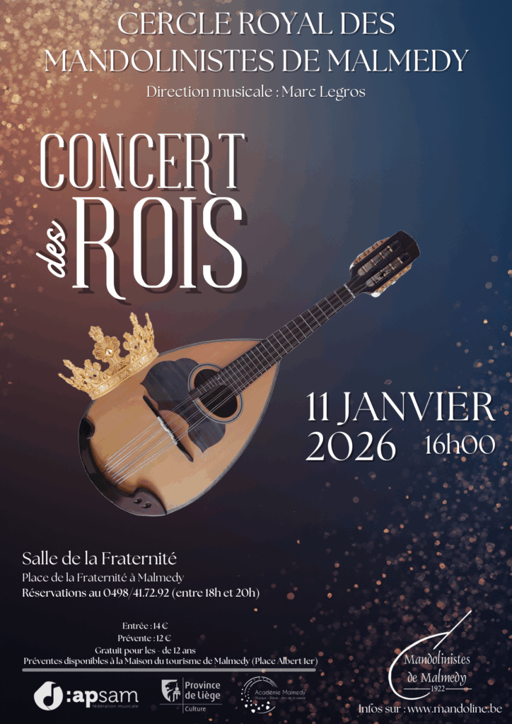 Le Cercle royal des Mandolinistes de Malmedy a le plaisir de vous inviter à son premier grand rendez-vous musical de l’année 2026. Fidèle à sa tradition plus que centenaire, l’ensemble vous proposera un programme riche et varié, mêlant œuvres classiques, arrangements modernes et pièces populaires qui mettent en valeur la sonorité unique de la mandoline et des instruments à plectre.